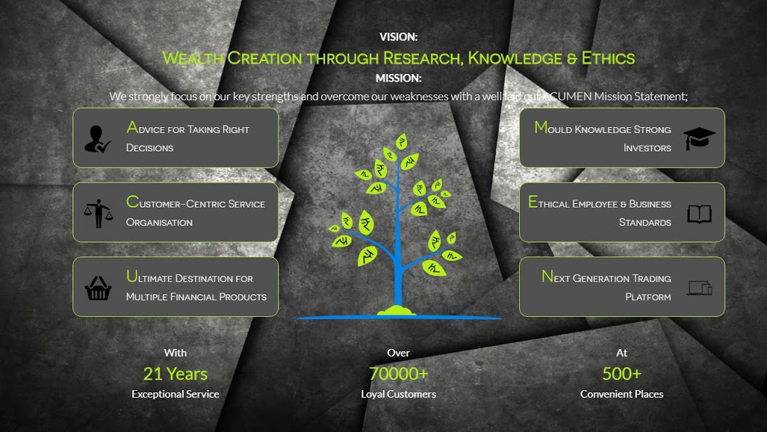 We help a large number of traders & investors to trade or invest in; Equities, Derivatives, Commodities, Currencies & Mutual Funds. We are SEBI registered investment advisor & registered member of NSE, BSE, NSDL, CDSL, MCX, NCDEX, ICEX & AMFI. With 25 years Service, Over100000+ Loyal Customers, At 850+Places.