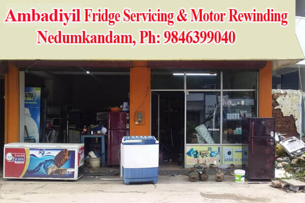 Located in Nedumkandam, Specialized in: Fridge, A/C, Washing Machine Servicing, Motor, Submersible, Altranator, Transformer Rewinding & Servicing, Power Tools Servicing, Generator, Welding Set Servicing, Fridge, Washing Machine, Spare Parts Available