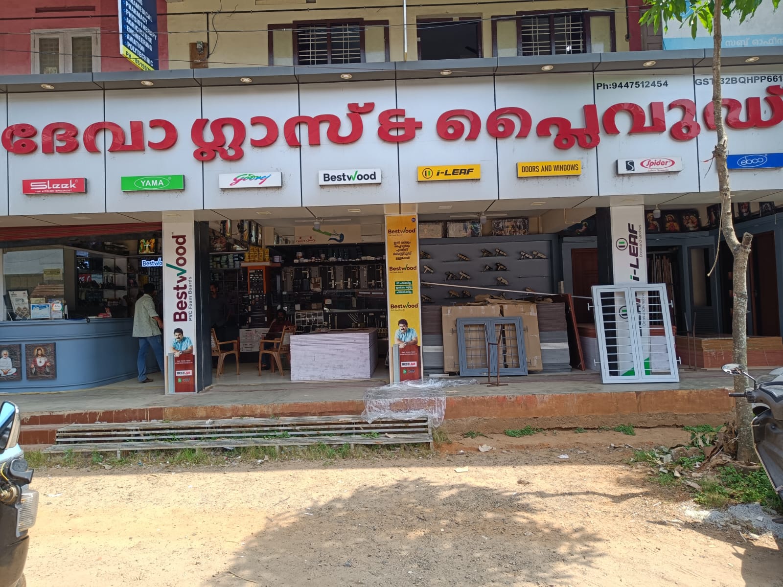 Located in Nedumkandam, EAST JUNCTION, Specilised in: Whole Sale & Retail in Glass, Plywood, MDF, Novopan, PVC Door, Glass Door, Skin Door, Laminated Door, Malesian Door, Ceeling Sheet, Aluminium Fabrication, Hardware's, Locks, Authorised Dealers: Saint Gobain Glass, Trojan PlY, Best Wood,Godrej & Spider Locks & Accessories, Everlast PVC Sheet & Door, Sleek Baskets,I-LEAF DOORS AND WINDOWS, I-LEAF STEEL DOORS, EURO GLASS DOOR AND F R P DOORS , Multiwood, Bestwood, Gypsum Board, Steel Windows Ph: 04868 232110