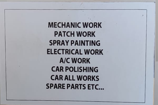 Located in Thookkupalam, Specialized in: Mechanic Work, Patch Work, Spray Painting, Electrical Work, A/C work, Car Polishing, Car All Works, Spare Parts