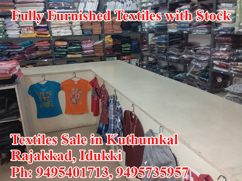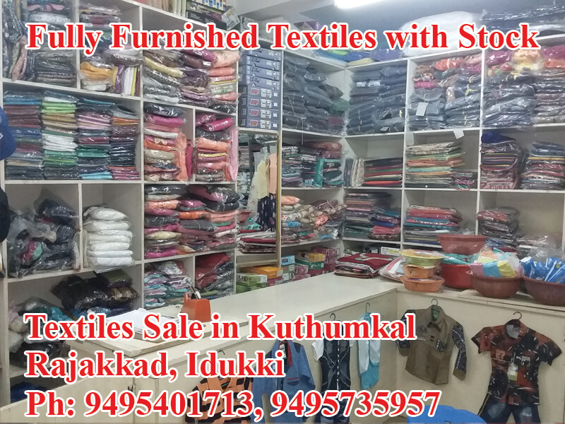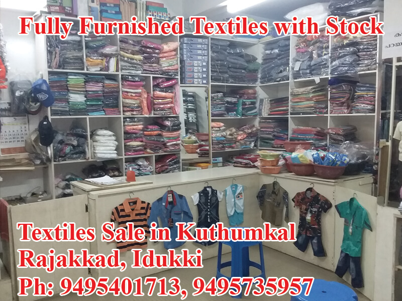 Located in Kuthumal, Rajakkad, Idukki, Fully Furnished Textiles shop sale with Stock,