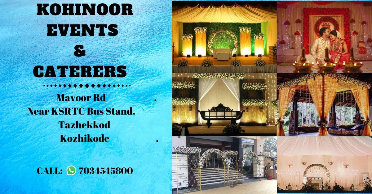 CALL - 7034545800 KOHINOOR EVENTS & CATERERS Mavoor Rd, Near KSRTC Bus Stand, Tazhekkod, Kozhikode, Kerala 673001 Catering service Kozhikode Calicut wayanad Caterers Calicut Kozhikode wayanad Out door catering Kozhikode Calicut wayanad Stage decoration Kozhikode Calicut wayanad Wedding pathway decor Kozhikode Calicut wayanad Car decor Kozhikode Calicut wayanad Etrance decor Kozhikode Calicut wayanad Entrance decoration Kozhikode Calicut wayanad Wayanad: Kalpetta -Panamaram-Manathavadi-Pulpally-Sulthan Batheri-Sultan Batheri-Batheri-Ambalavayal-Vythiri-Meenangadi Kozhikode : Kozhikode-Calicut-Vadakara-Vatakara-Badakara-Feroke-Balussery-Kinassery-Koduvally-Ramanattukara-Thamarassery-Thiruvambady-Perambra-Koyilandy-Quilandy-Mahe