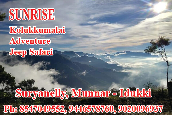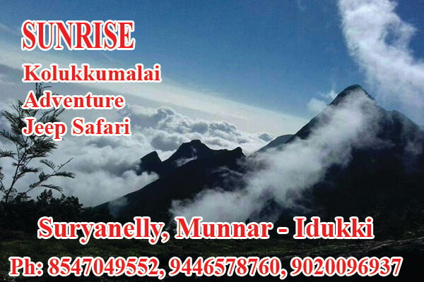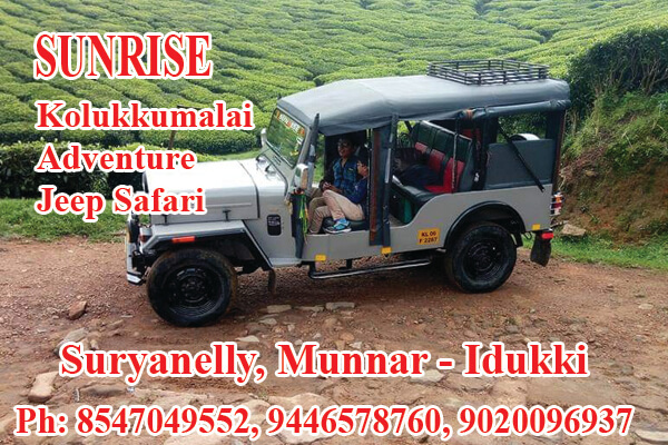 Located in Surianalle, Specilized in: Kolukkumalai Adventure Jeep Safari, Lake Views, 100 Years old Tea Plantations, New Tea Factory, Kerala Tamilnadu View Point, Echo Point, Lion Rock, Kodaikanal Mountain View, Top Station View Point, Old tea factory, South indias 1st Highest Peak at 8661 feet in sea level, Ph: 9020096937