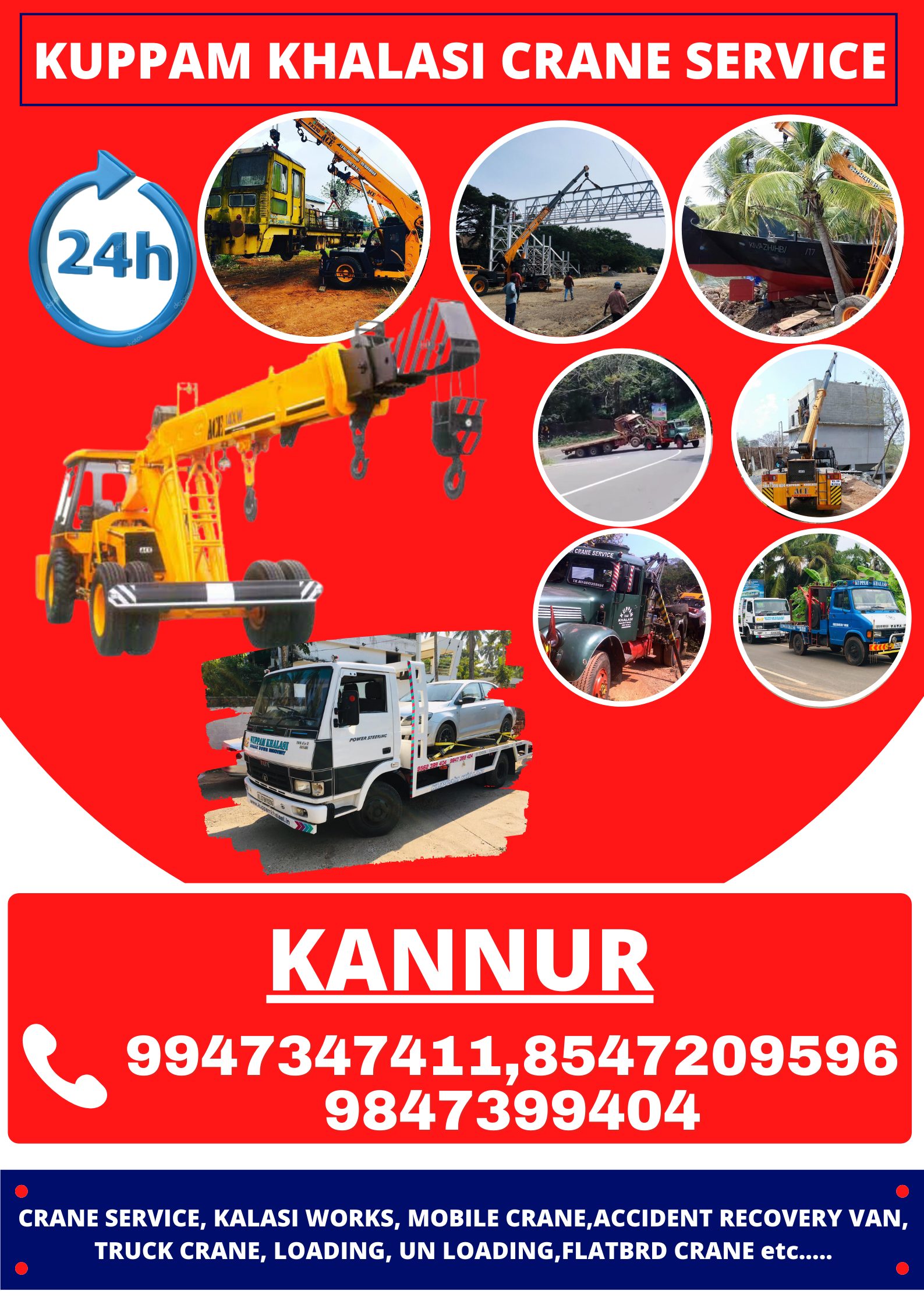 Accident towing recovery van Kannur -,Chimney boiler erection work Kannur -,Crane Service Kannur -,Flatbed crane Service Kannur -,Hydra crane Service Kannur -,Khalasi work Kannur -,Mobile crane Service Kannur -,Recovery Lorry Service Kannur -,Recovery van Service Kannur -,Towing recovery van Kannur -,Transformer erection work Kannur -,Truck crane Service Kannur -