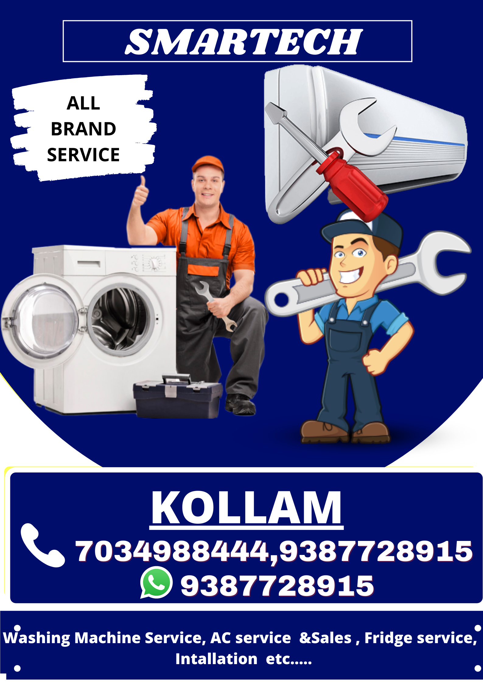 SMARTECH-WASHING MACHINE SERVICE KOLLAM-FRIDGE SERVICE KOLLAM-AC SERVICE CENTRE KOLLAM-AC SALES KOLLAM-KENSTAR SERVICE CENTRE KOLLAM