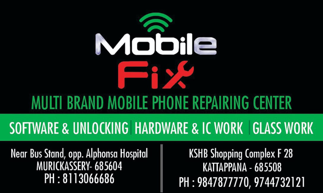 Located in Murickassery, Specialized in: Multi Brand Mobile Phone Repairing Center, Software & Unlocking, Hardware & I C Work, Glass Work