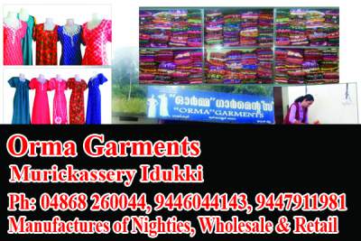 Located in Murickassery - Specilised in: Manufactures of Nighties - Wholesale - Retail