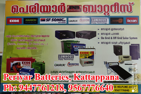 Located in Kattappana, Specialized in: Solar Inverter, Solar Panal, On Grid off Grid solar System, Solar Water Heater, Automotive Batteries